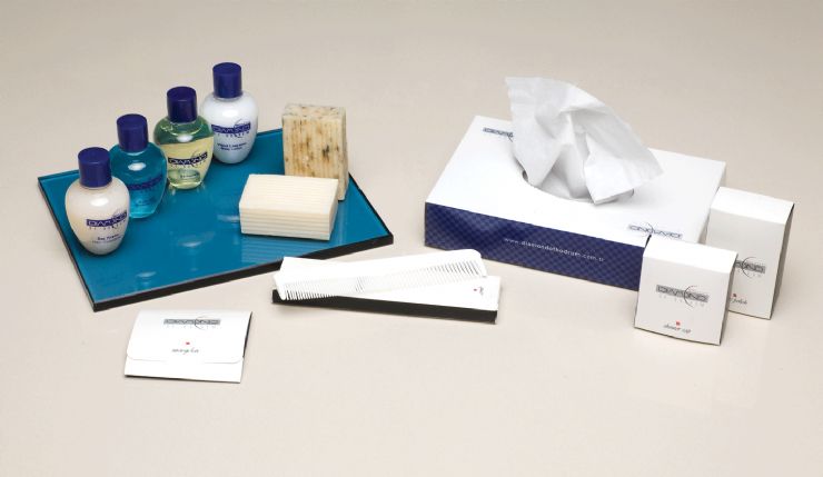 1.Saç Kremi 2.Duş Jeli 3.Şampuan 4.Vücut Losyonu 5.Dikiş Seti 6.Sabun 7.Sabun 8.Tarak 9.Kutu Mendil 10.Duş Bonesi 11.Ayakkabı Cilası 12.Buklet Tepsi
