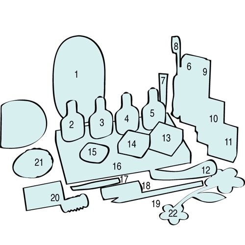 1.Banyo Lifi 2.Saç Kremi 3.Duş Jeli 4.Şampuan 5.VücutLosyonu 6.Diş Seti (7.diş macunu 8.diş fırçası) 9.Törpü 10.Ayakkabı Cilası 11.Duş Bonesi 12.Ayakkabı Çekeceği 13.Makyaj Pamuğu 14.Sabun 15.Sabun 16.Buklet Tepsi 17.Şeker 18.Kibrit 19.Kurşun Kalem 20.Dikiş Seti 21.BardakAltlığı 22.Çiçek Klozet Bandı
